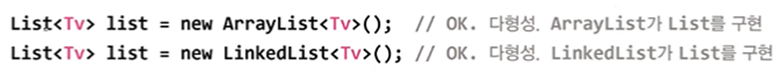 // List<Tv> tvlist = new ArryaList<Tv>(); // Ok. 다형성