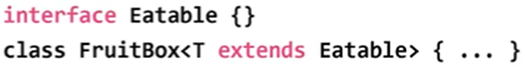 class FruitBox<T extends Fruit & Eatable> extends Box<T> {}