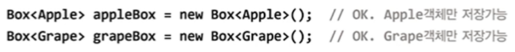 // FruitBox<Grape> grapeBox = new FruitBox<Apple>(); // 에러. 타입 불일치