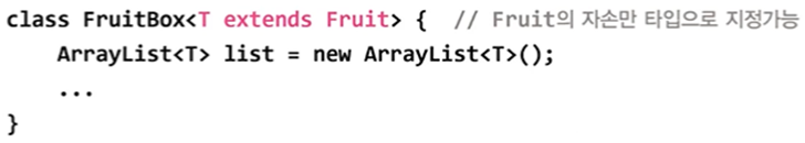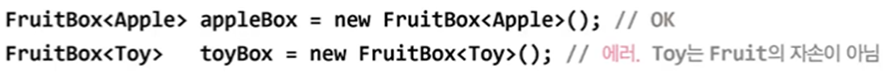 // FruitBox<Toy> toyBox = new FruitBox<Toy>(); // 에러 Fruit의 자손이 아님