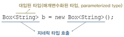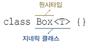 | Box | 원시 타입(raw type), 일반 클래스일 때의 타입 |