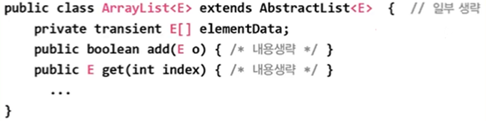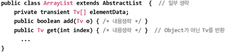 -> 타입변수 E(Element)를 선언하고 Object를 다 E로 변환!, T로 써도 가능!