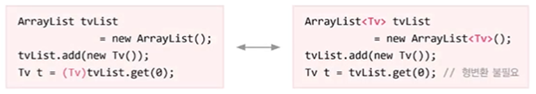 - 다룰 객체의 타입을 미리 명시해줌으로써 번거로운 형변환을 줄여준다.