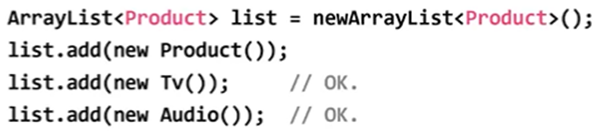 productlist.add(new Audio()); // Product와 그 자손도 ok