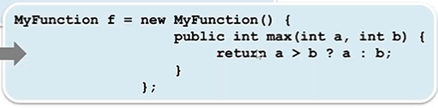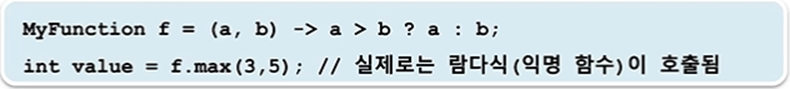 MyFunction f = (a,b) -> a > b ? a : b; // 람다식. 익명객체
