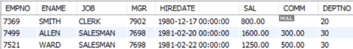 Mysql> SELECT * FROM emp WHERE comm IS NULL;
