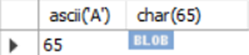 Mysql> SELECT ASCII('A'), CHAR(65);