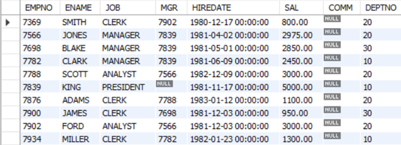 -> DESC emp;를 해서 구조를 보게 되면 EMPNO만 NULL값이 NO로 되어있다.