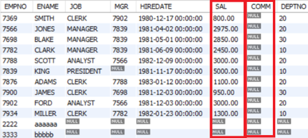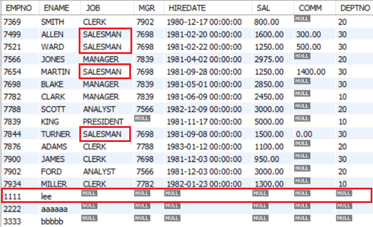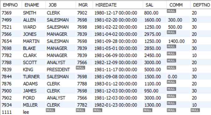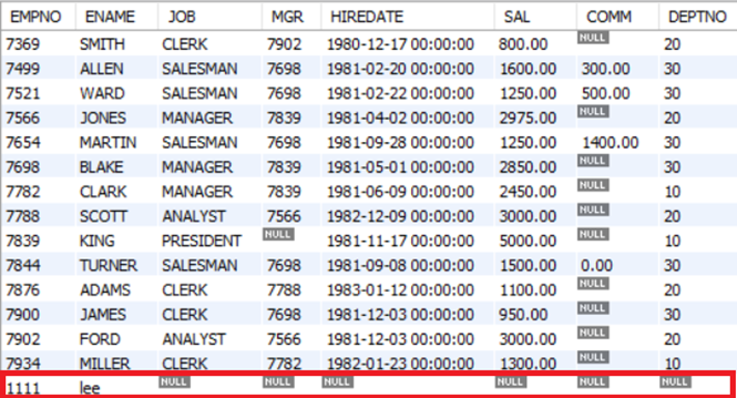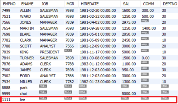 > INSERT INTO emp(empno, ename) VALUES (1111, 'lee');