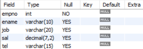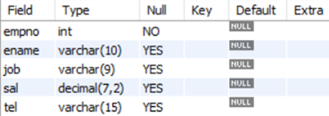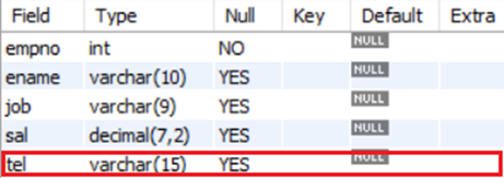 > ALTER TABLE emp2 ADD tel VARCHAR(15);
