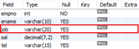 > ALTER TABLE emp2 MODIFY job VARCHAR(20);