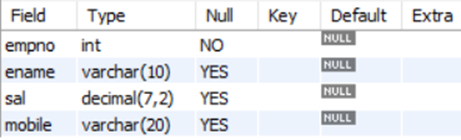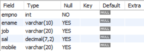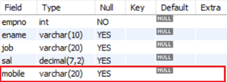 > ALTER TABLE emp2 CHANGE tel mobile VARCHAR(20);