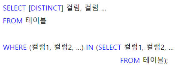- 다중 열 서브 쿼리는 주로 ‘IN’을 사용한다.