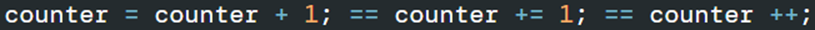 counter에 1을 더한 값을 다시 counter에 저장(할당)한다는 의미!