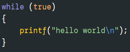 이 코드는 계속해서 “hello world”를 무한정 출력할 것임