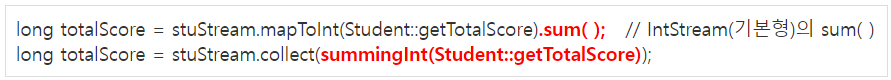 - 학생스트림인 stuStream에서 총점을 다 더함