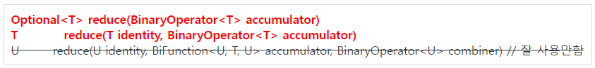 | reduce( ) | Collectors.reducing( ) | 둘 다 거의 동일 |