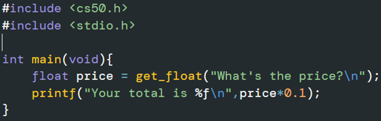 - get_float 함수를 사용해 가격을 물어보고 가격을 받아 price에 저장한 다음 세금(10%)을 포함한 값을 계산해서 출력하기