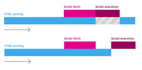 - HTML은 파싱 도중, script 태그를 만나게 되면 중간에 파싱이 멈춘다.