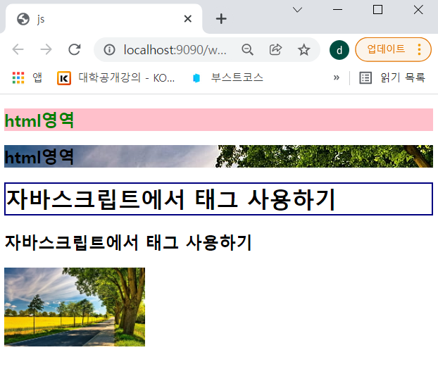 document.write("<h2>자바스크립트에서 태그 사용하기<h2>");