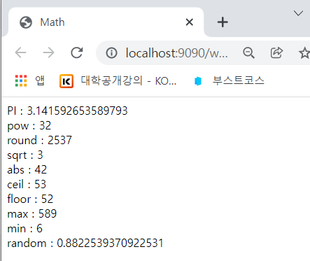 r += "pow : " + Math.pow(2,5) + "<br/>"; // 2의 5제곱