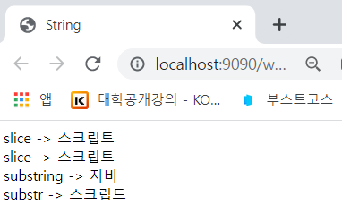 document.write("substring -> ", txt.substring(0,2),"<br/>"); //[0]부터 [1]까지