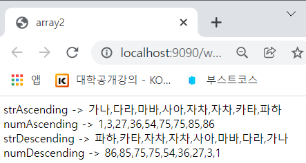 <body onload="arraySortTest();"> <!-- body가 로딩이 끝나면 script 실행 -->