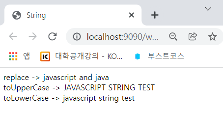- replace("기존문자열", "바꿀문자열"), toUpperCase( )와 toLowerCase( )