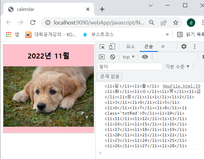 1) 현재 <div id="calendar">의 부분(핑크색은 보기 위해서)