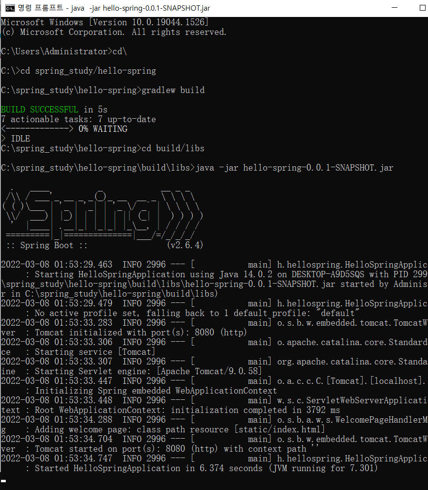- `java -jar hello-spring-0.0.1-SNAPSHOT.jar`