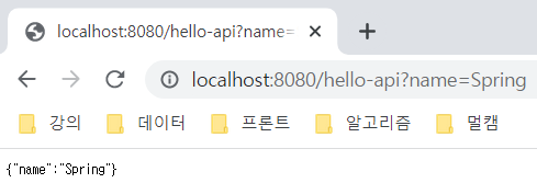 JSON 형식{key: value}으로 데이터가 출력된다.(페이지 소스에도 {"name":"Spring"}으로 나와있다.