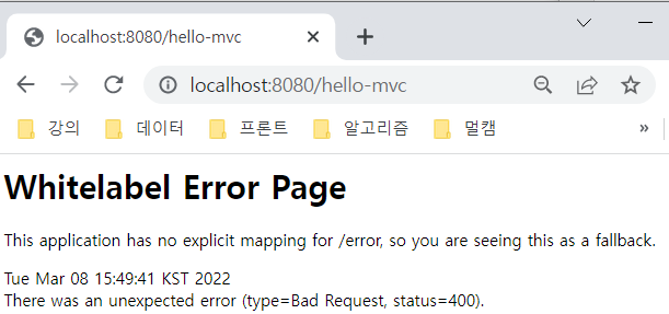 HelloController.java(controller) (뷰가 없는 것을 확인할 수 있다.)