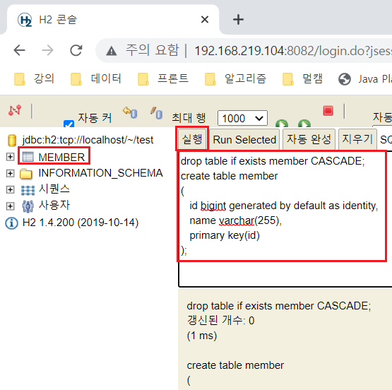 -> 만약 문제가 생겼을 때는 서버를 내리고, test.mv.db를 지우고 다시 생성한다.