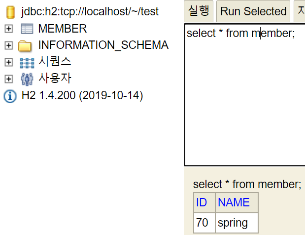 @Commit 애너테이션을 추가 후 테스트를 수행하면 h2 DB에 데이터가 저장되는 것을 볼 수 있다!!