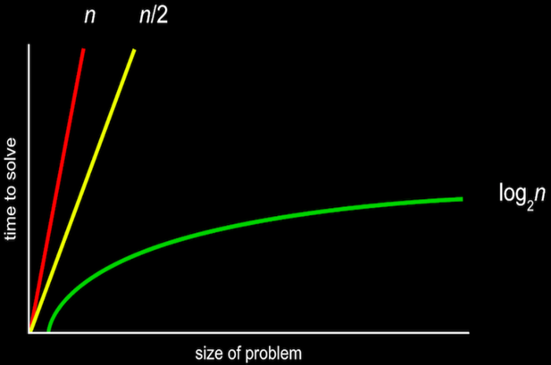 O(n)은 n만큼 커지는 것이므로 n이 늘어날수록 선형적으로 증가하게 됨. O(n/2)도 결국 n이 매우 커지면 1/2은 큰 의미가 없어지기 때문에 O(n)이라고 볼 수 있음(O(n) == O(n/2))