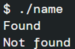 - strcmp함수로 올바르게 코드를 작성했지만 Found와 Not found가 출력됨