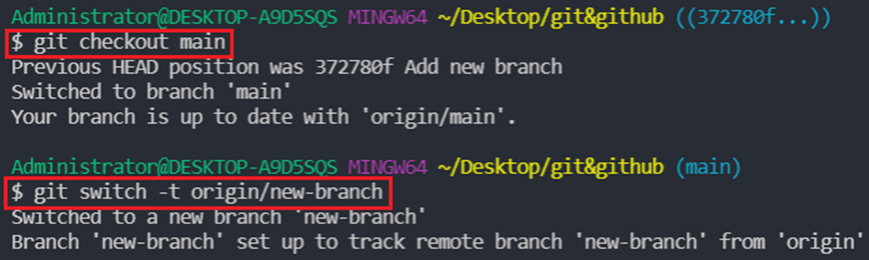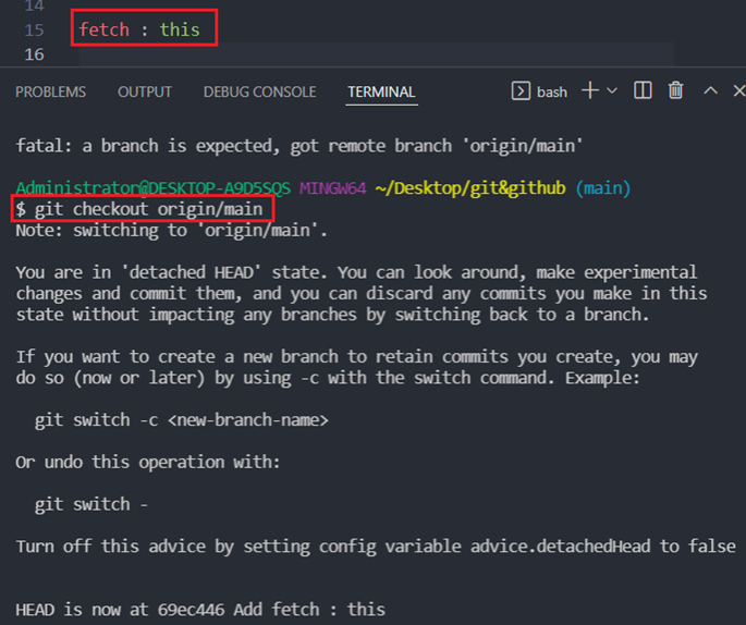 git checkout origin/main