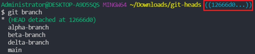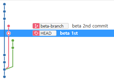 현재 beta-branch에서 head는 beta 2nd commit에 있다.