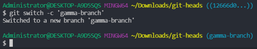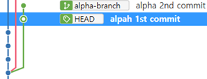 현재 alpha-branch에서 HEAD는 alpha 2nd commit이다.