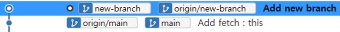 원격에서 새로운 브랜치 생성(new-branch) 후 커밋 추가 (파일에 new : branch 추가하고 커밋메시지: Add new branch)