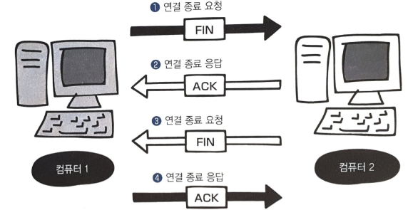 - 또한 컴퓨터2에서도 컴퓨터1로 연결 종료 요청(FIN)을 보낸다.