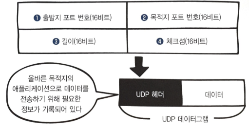 UDP 데이터그램: UDP 헤더가 붙은 데이터