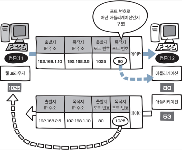 목적지가 어떤 애플리케이션인지 구분하지 못하면 사용자가 홈페이지를 보기 위해 웹 브라우저를 사용하는 데도 메일 프로그램으로 데이터가 전송될 수 있다. 즉, 어느 애플리케이션의 데이터인지 알 수 없기 때문에 이런 일이 일어난다.