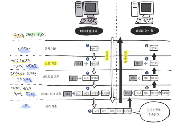 각 계층의 통신 프로토콜을 살펴보면서, 캡슐화와 역캡슐화 개념을 익혔다. 전송 계층에서도 마찬가지로 전송이 일어날 때 헤더를 붙이는 캡슐화와 이를 제거하는 역캡슐화가 일어난다.