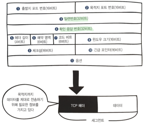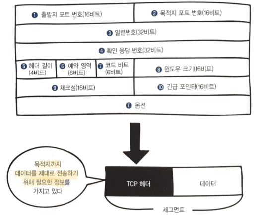- TCP 헤더: TCP로 전송할 때 붙이는 헤더