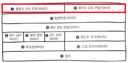 이런 일이 일어나지 않게 하기 위해서 TCP 헤더의 출발지 포트 번호(source port number)와 목적지 포트 번호(destination port number)가 필요하다.