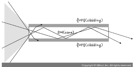 코어(core): 빛의 굴절률이 높은 부분 클래딩(cladding): 빛의 굴절률이 낮은 부분 |