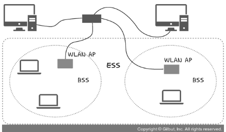 BSS(Basic Service Set)은 무선 서비스가 가능한 제한된 공간에서 기본적인 무선장치들로 구성된 랜환경입니다. ESS(Extended Service Set)은 유선랜과 무선랜으로 구성된 네트워크이고 BSS보다 규모가 큰 랜