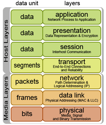 | 인터넷 계층: 패킷 | 링크 계층: 프레임(데이터 링크 계층), 비트(물리 계층) |