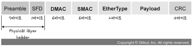 | Preamble | 이더넷 프레임이 시작임을 알린다. |